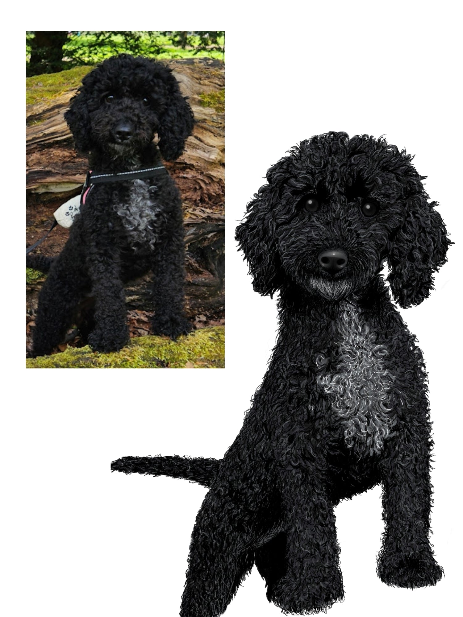 Each pet is drawn digitally by hand from scratch, built slowly over many hours with intense attention to detail. The aim is not just perfection, but presence: capturing the weight, expression and unmistakable personality of your animal. It is professionally printed to preserve depth, contrast and fine detail - making it suitable for long-term display.